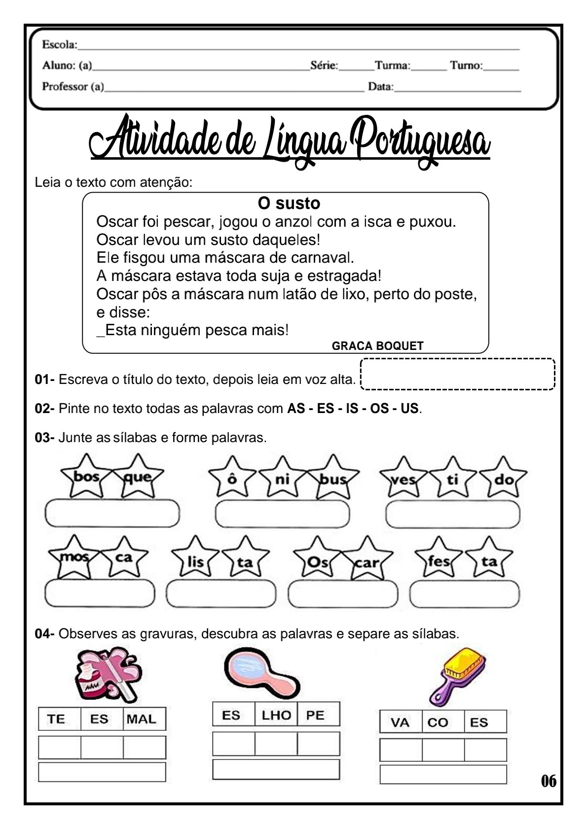 👍Caderno de atividades: leitura, interpretação e gramática