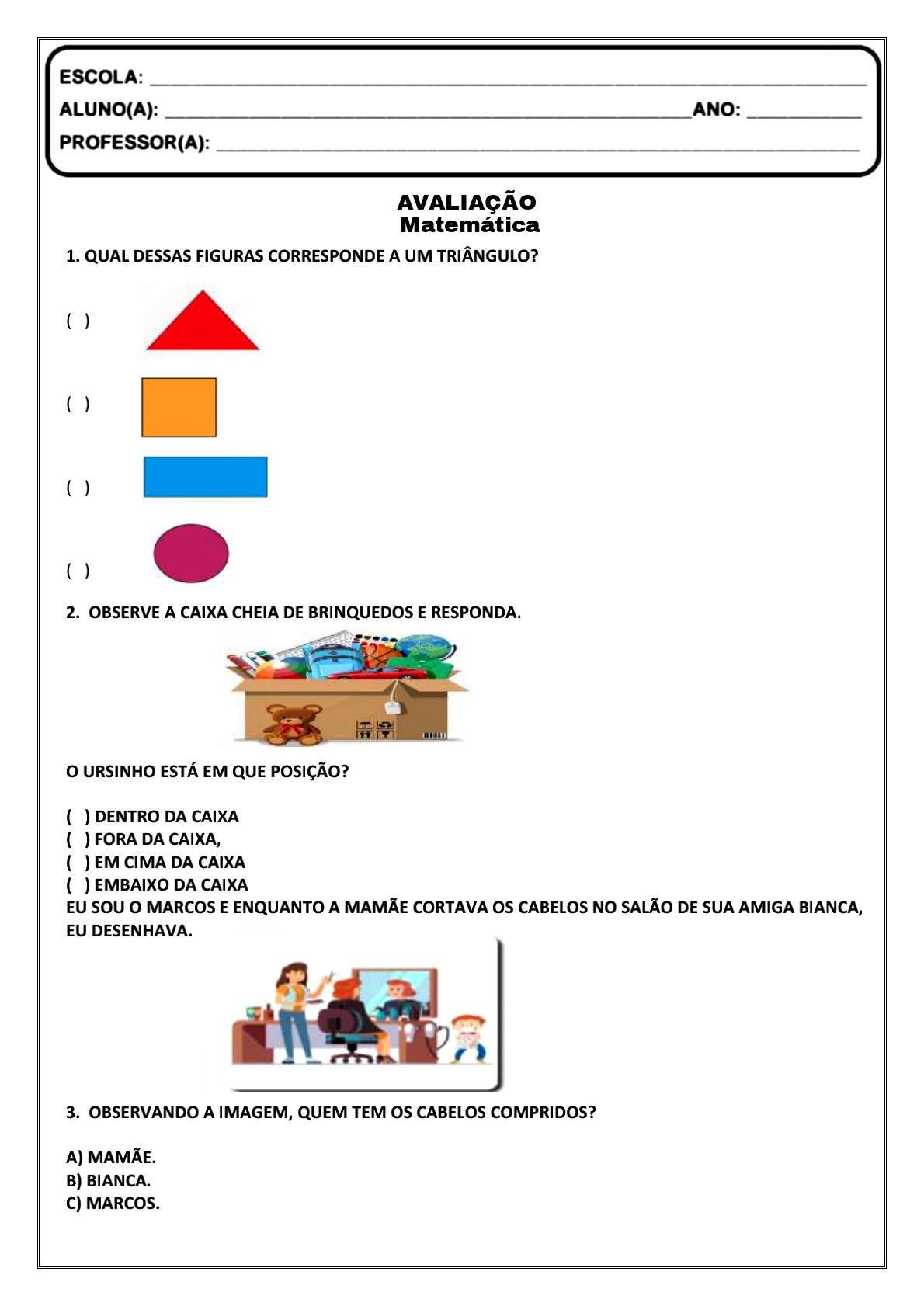 👍Avaliação de matemática