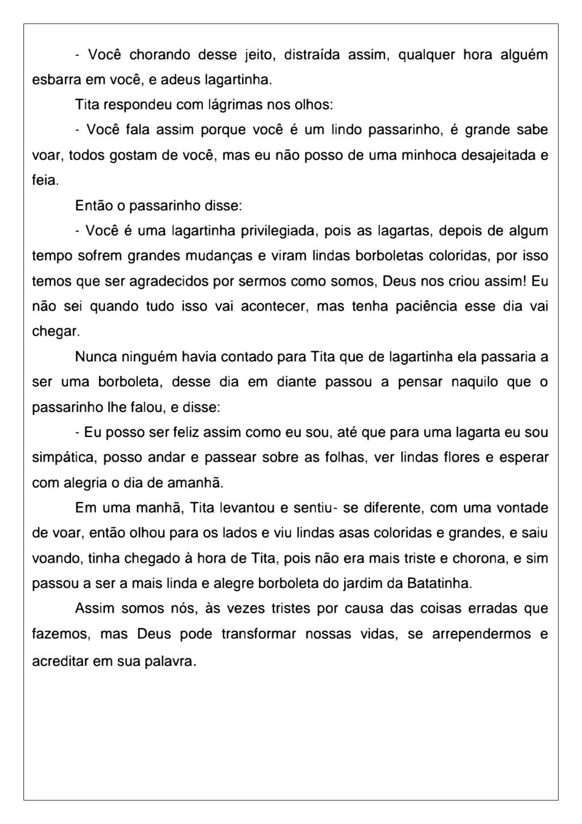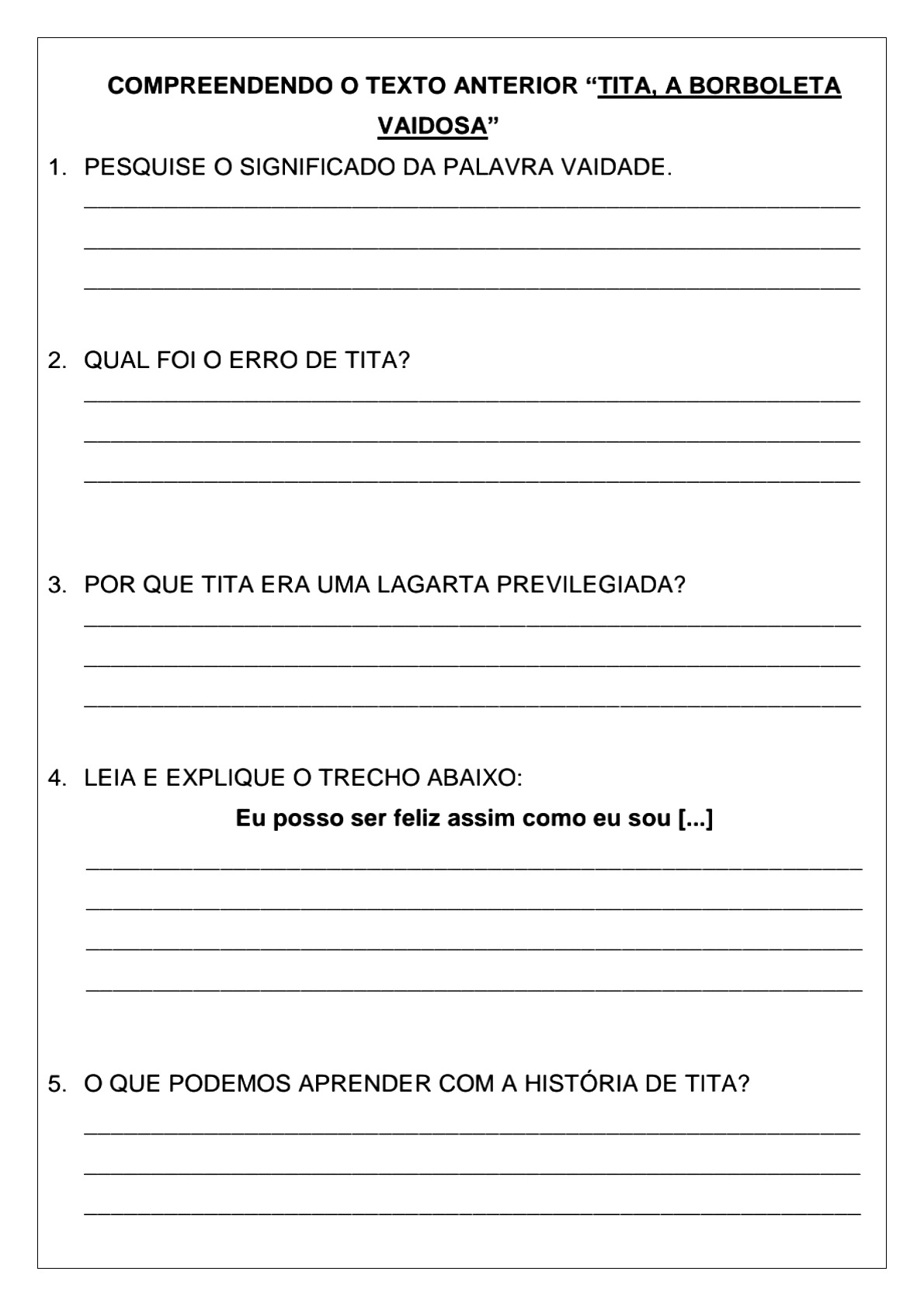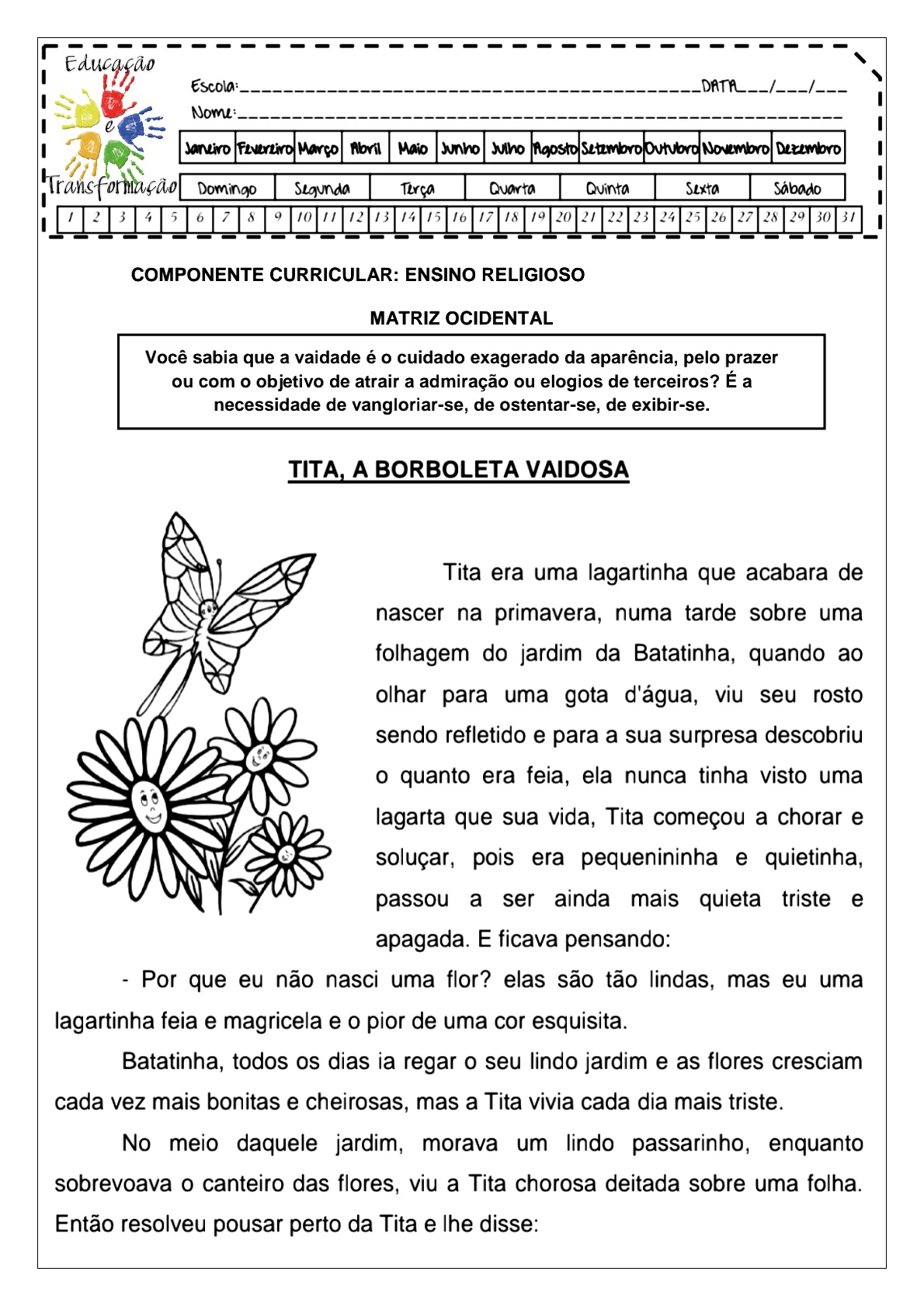 Atividade de ensino religioso sobre vaidade