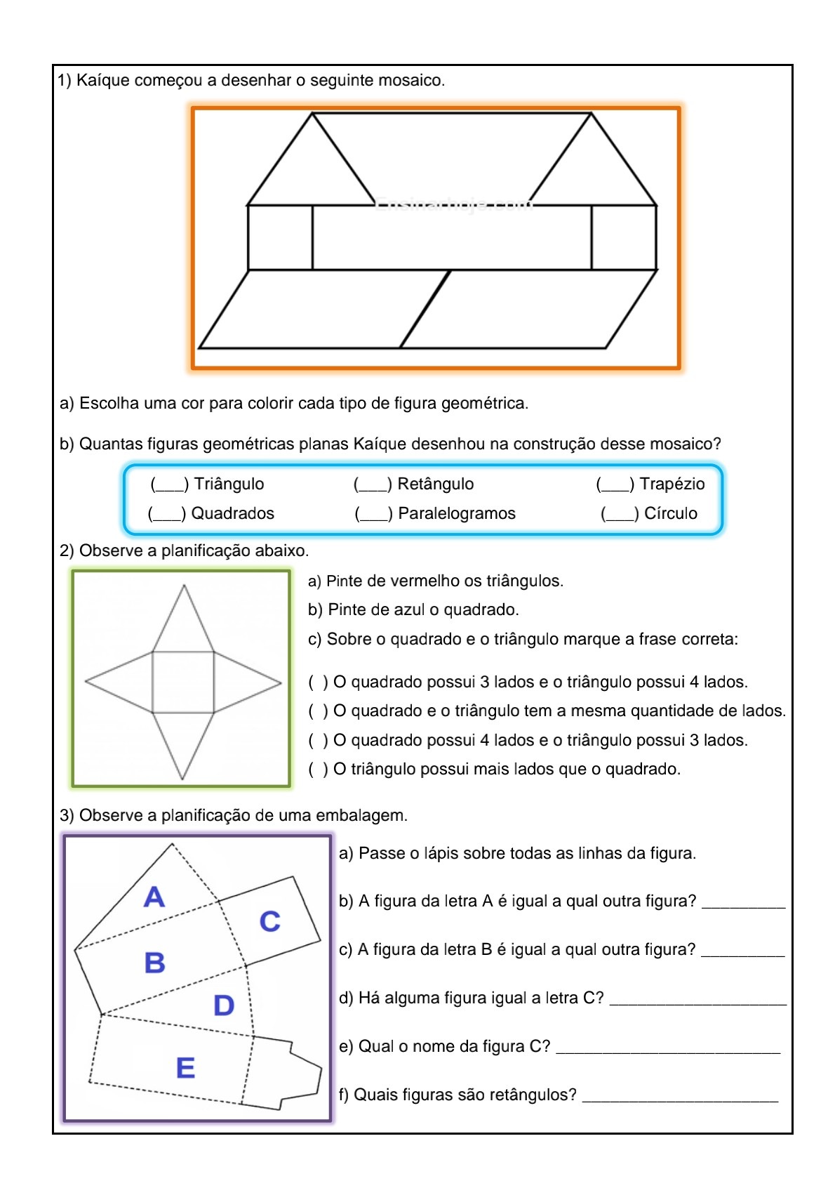 Atividade de matemática sobre geometria plana…