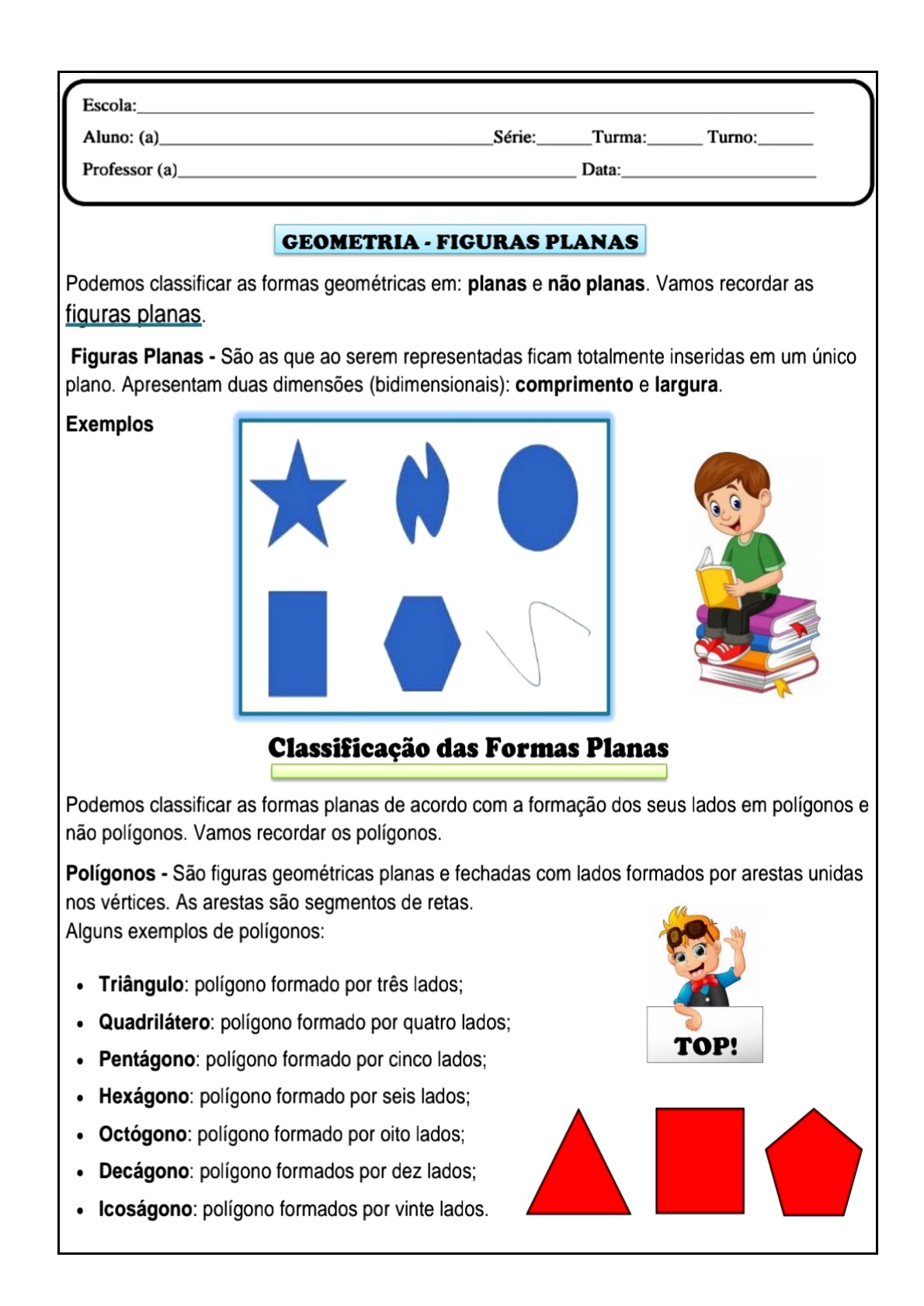 👍Matemática: geometria plana Atividade de matemática sobre geometria plana…