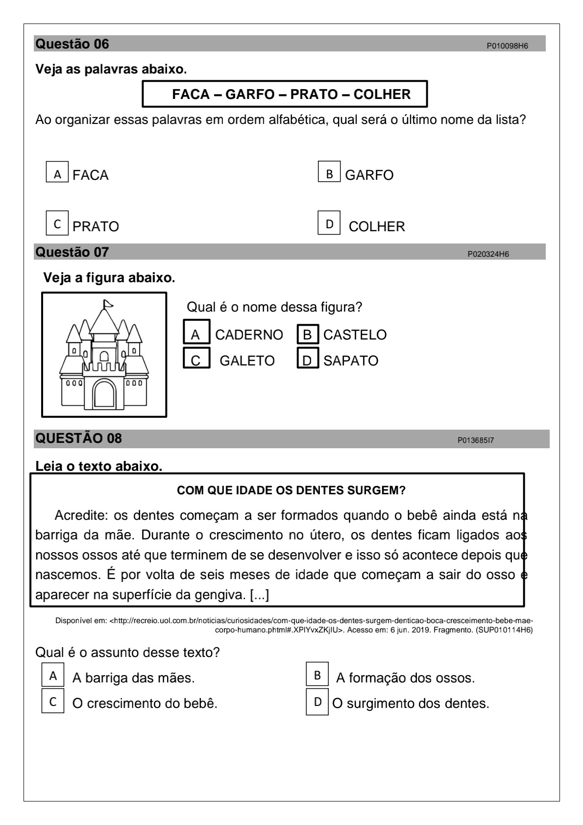 Sugestão para simulado de matemática no 1º ano do ensino fundamental…