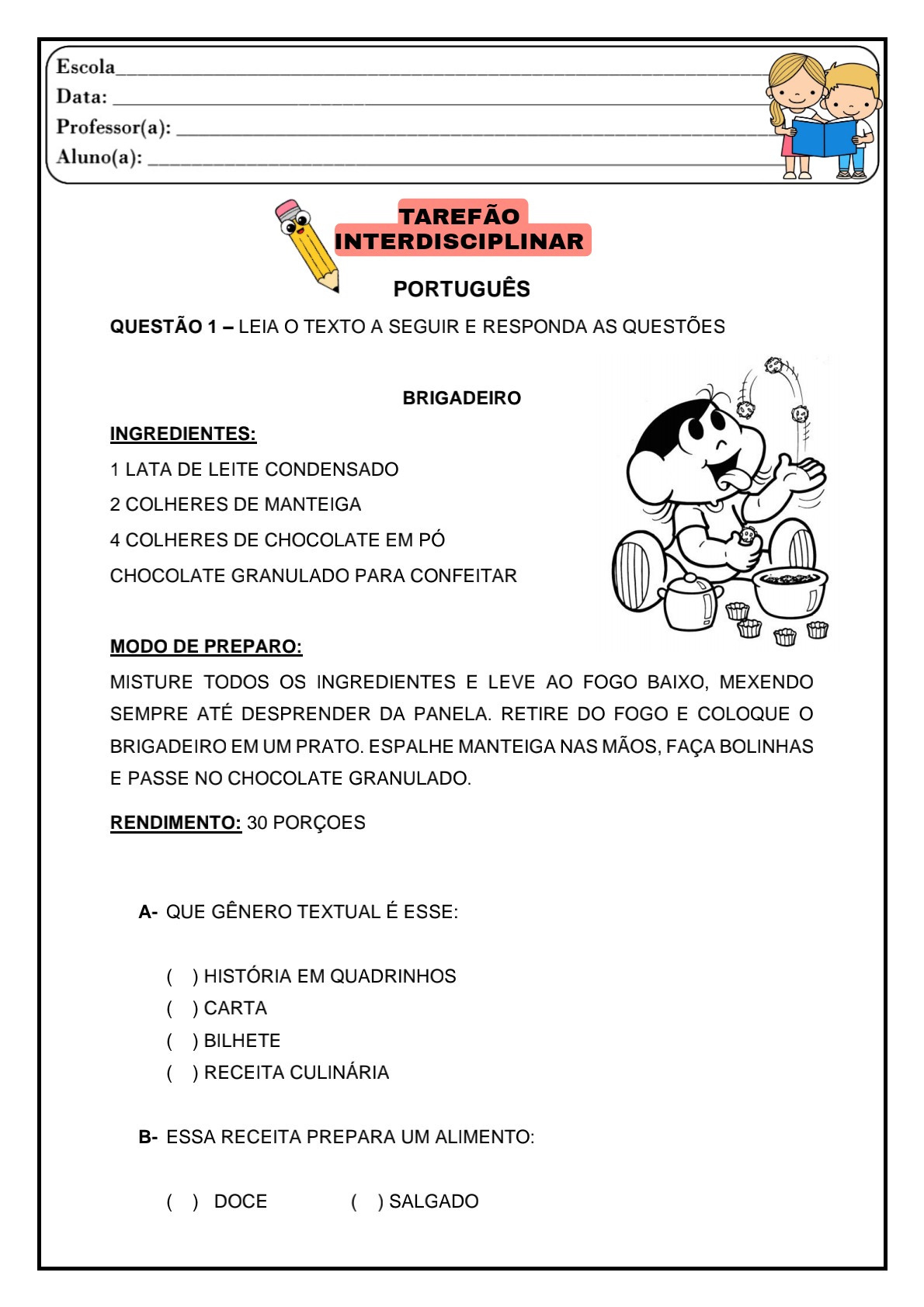 👍Tarefão Interdisciplinar: 3º ano