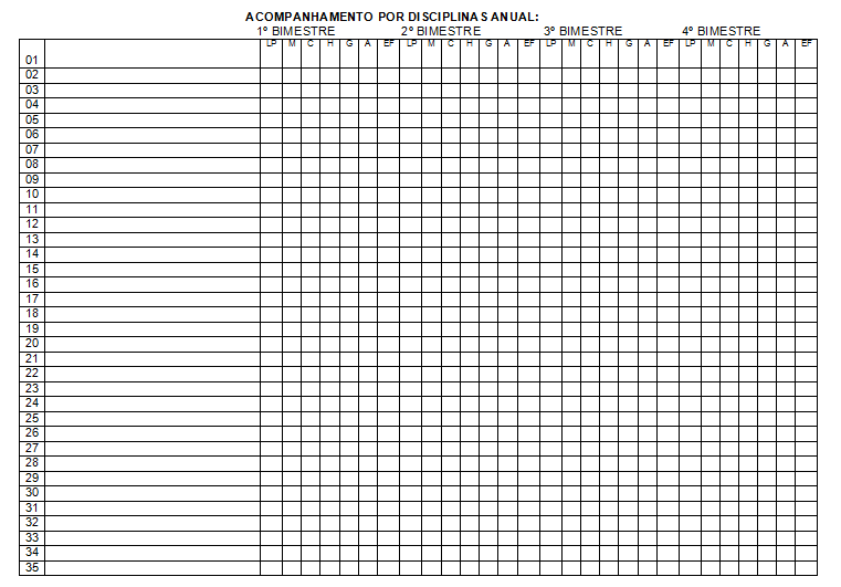 Acompanhamento por disciplina Esse acompanhamento é ótimo para colocarmos em nosso semanário!!!!!!