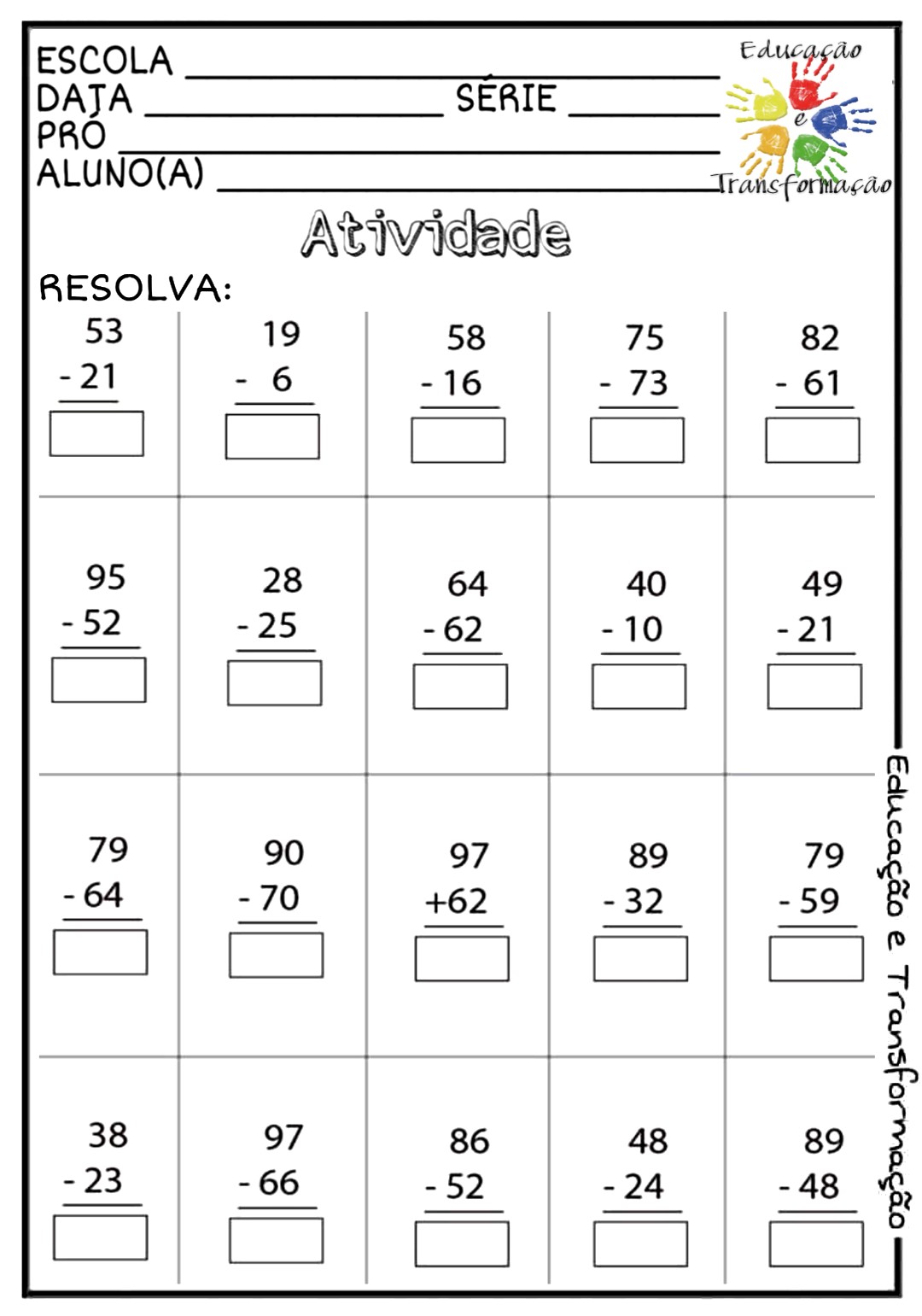 Adição e Subtração Atividades para trabalhar adição e subtração…