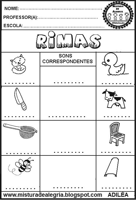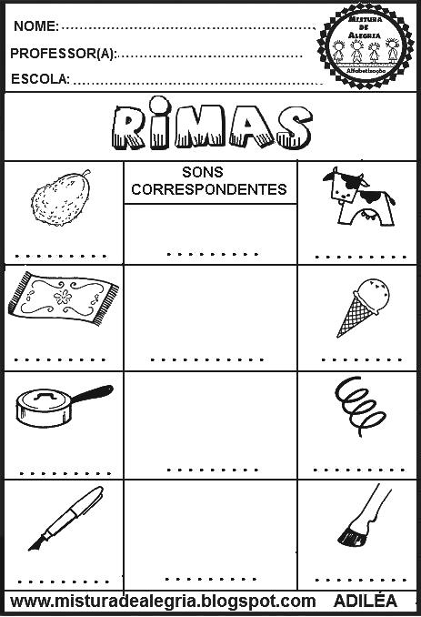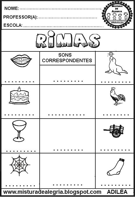 Boa noite meus amigos! Acabei de criar estas atividades de alfabetização e consciência fonológica – rimas, para alunos do ensino fundamental I.