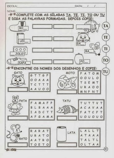 ALFABETIZAÇÃO – TAREFA PARA CASA
