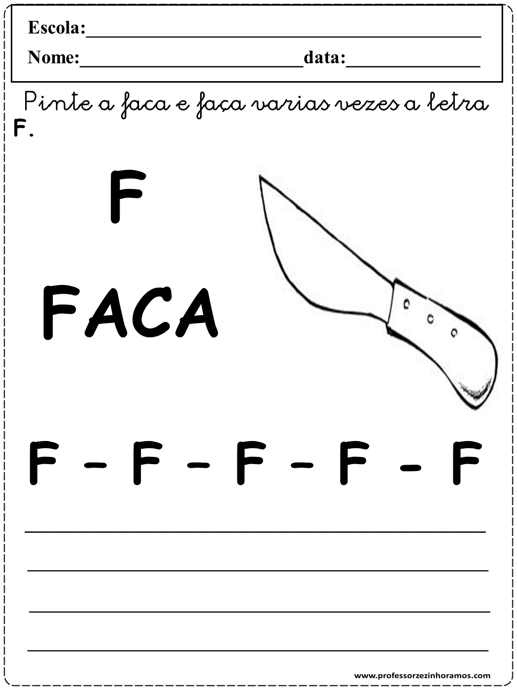 Atividades para as crianças desenvolverem suas habilidade, pintando e fazendo as letrinhas indicadas do alfabeto.