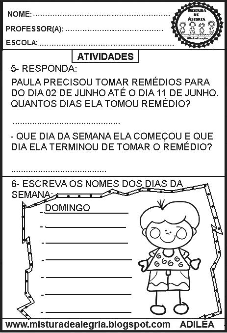 ➤Reconhecer e relacionar períodos do dia, dias da semana e meses do ano, utilizando calendário.
