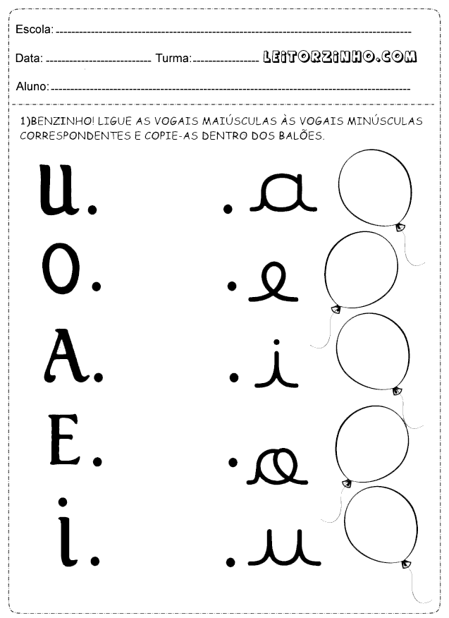 | Ligue as vogais maiúsculas às vogais minúsculas correspondentes |