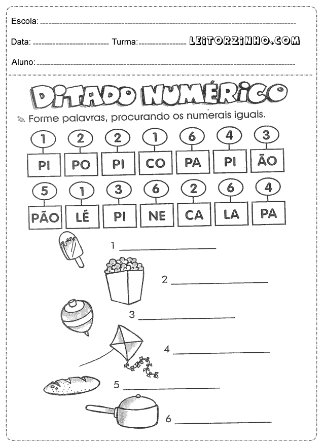 | Forme palavras, procurando os numerais iguais |