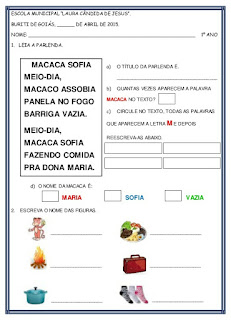 Atividades com a parlenda “Macaca Sofia”