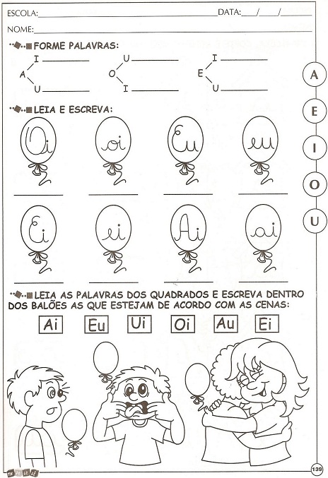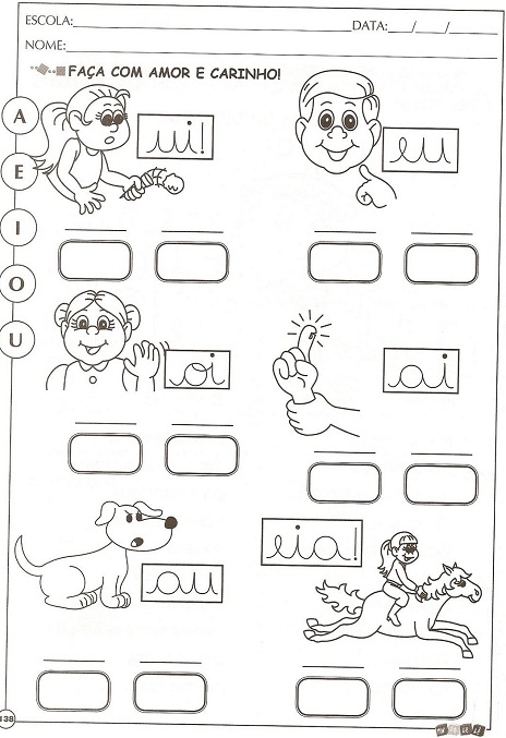 Boa noite! Vejam estas atividades com as junções de vogais. Se quiser ver todas elas basta clicar logo abaixo e fazer o download.