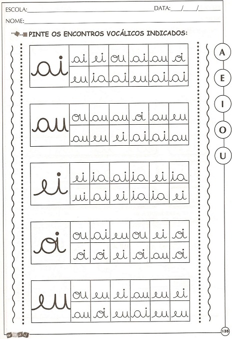 ATIVIDADES COM JUNÇÕES DE VOGAIS PARA IMPRIMIR E COLORIR