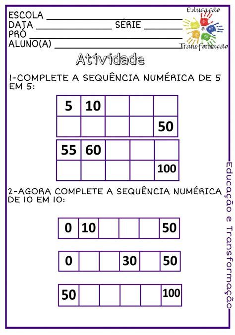 ATIVIDADES COM SEQUÊNCIA NUMÉRICA DE 0 A 100 – 1º E 2º ANO