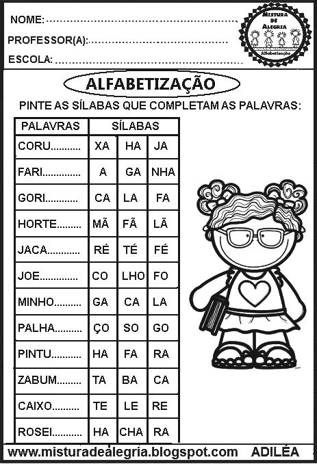 Basta você digitar a palavra na caixa de pesquisa, de acordo com o tema do seu interesse. Nas atividades abaixo, os alunos vão ler e em seguida escolher as respectivas sílabas que completam cada palavra.