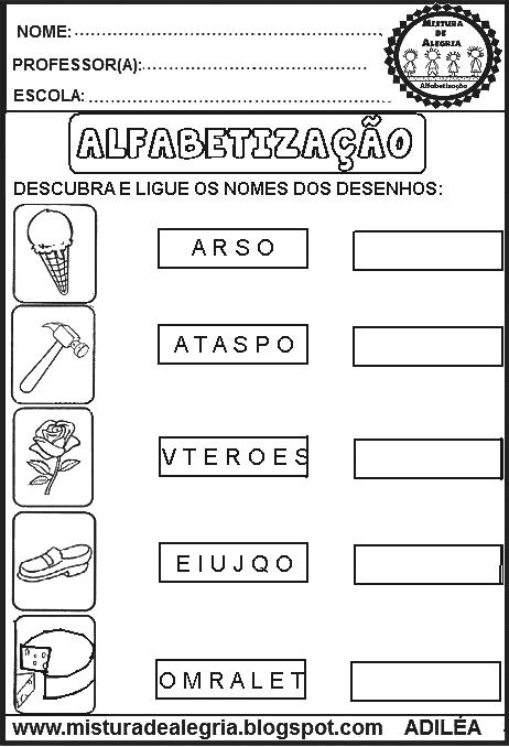 ATIVIDADES DE ALFABETIZAÇÃO – FORMAÇÃO DE PALAVRAS