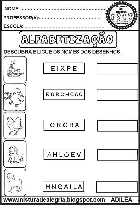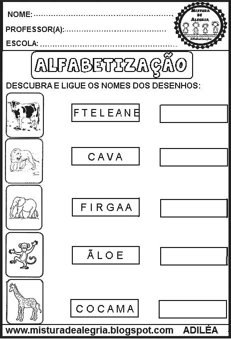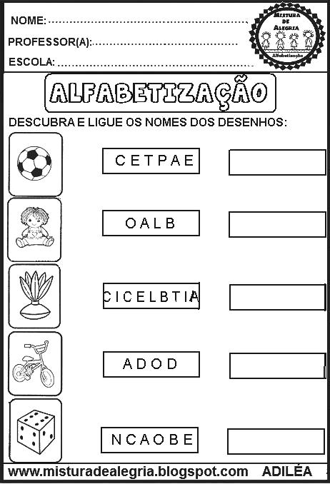 São atividades educativas, com nomes de animais, brinquedos, frutas, transportes e outros objetos. São atividades de formação de palavras que podem ser trabalhadas com alunos do 1º ano, alunos com baixo desempenho, para casa, etc.