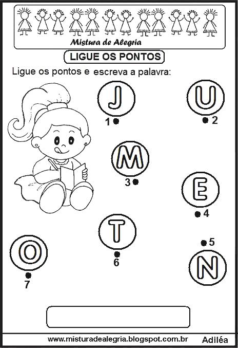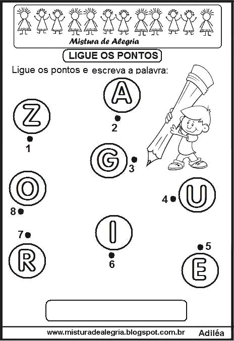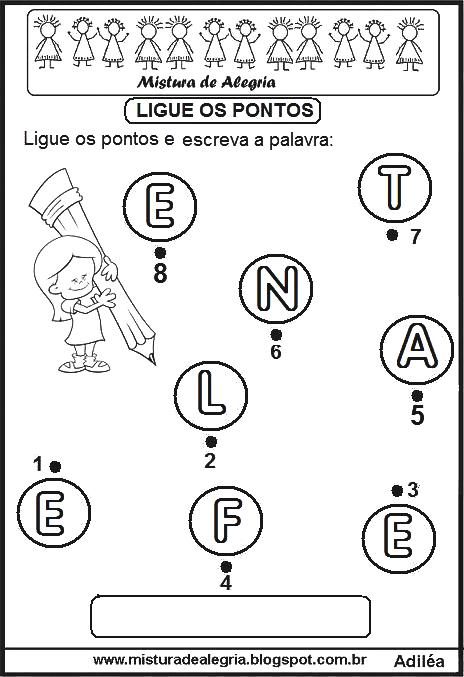 Olá amigos! Hoje eu trago para vocês, estas atividades de alfabetização – ligando os pontos, formação de palavras, a partir das letras do alfabeto, para os alunos do Ensino Fundamental I.