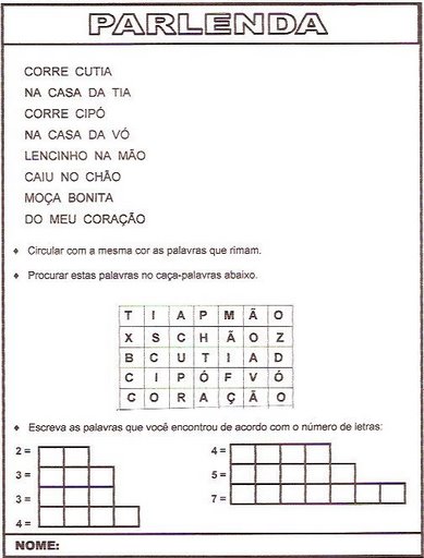Atividades de alfabetização
