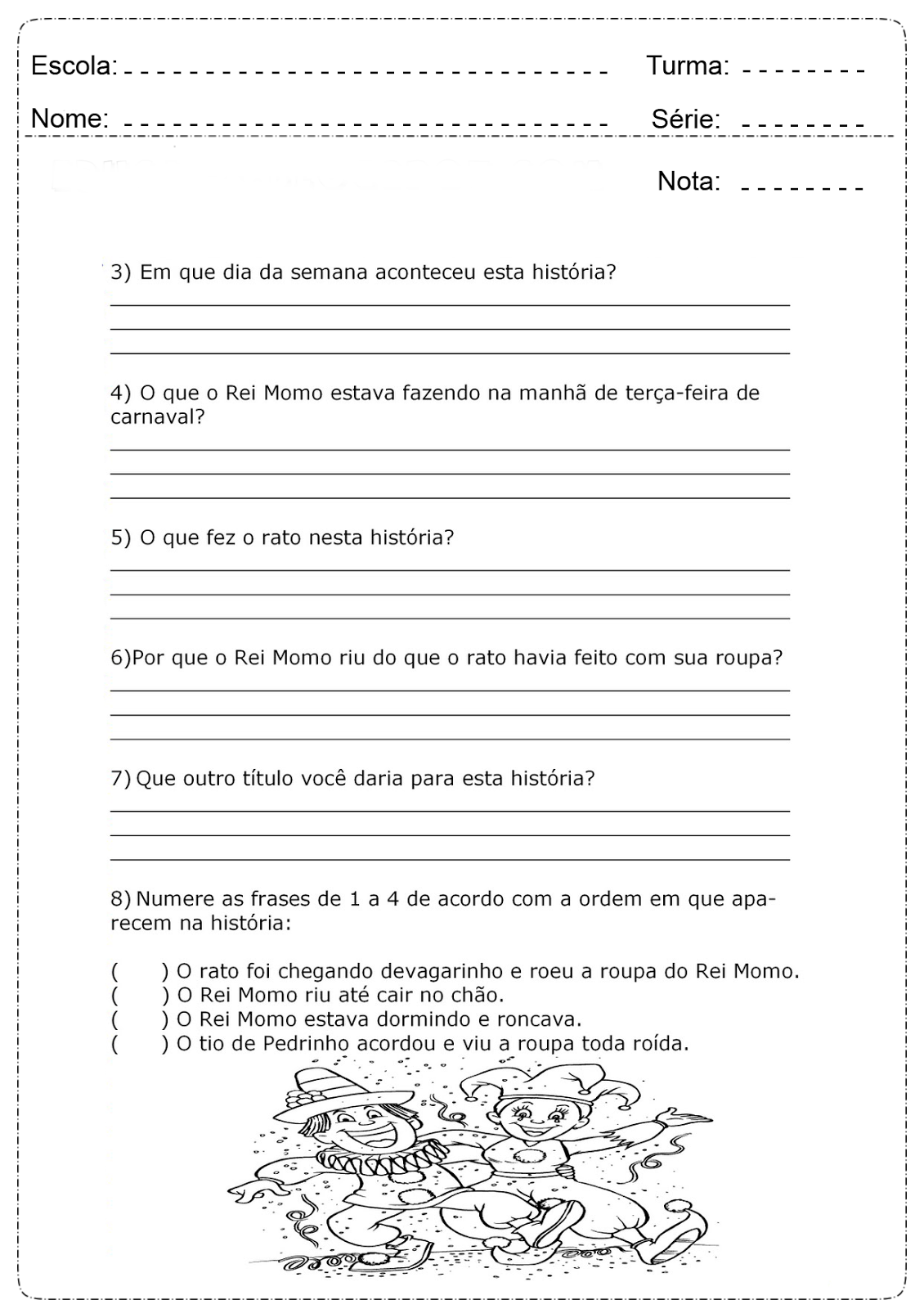 ATIVIDADES DE CARNAVAL PARA O 4º ANO