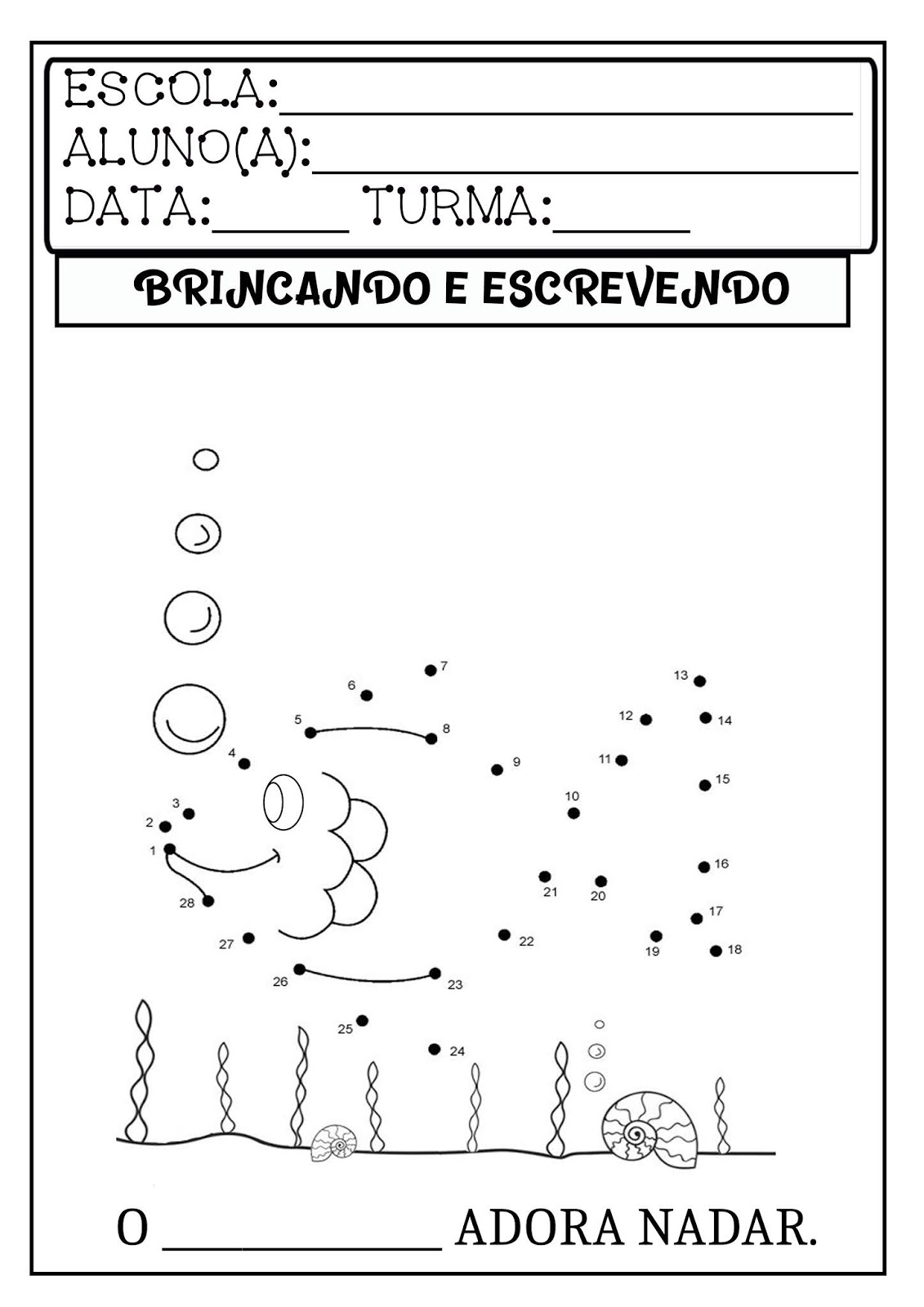 Eles precisarão ler e interpretar as frases, e, em seguida, completá-las, com o nome de cada animal! Em seguida, podem fazer arte: Pintura, colagem com os mais diversos e divertidos materiais: lã, barbante, canudinhos de papel, forminhas de docinho, bolinhas de papel, papel rasgado ou picado etc. ATIVIDADE 02 – LIGA-PONTOS DO CACHORRO