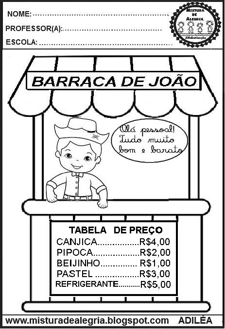 Fiz esta atividade interativa de alfabetização, com leitura e interpretação de texto sobre a barraca de João e resolvi aproveitá-la para criar atividades de matemática.