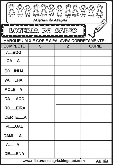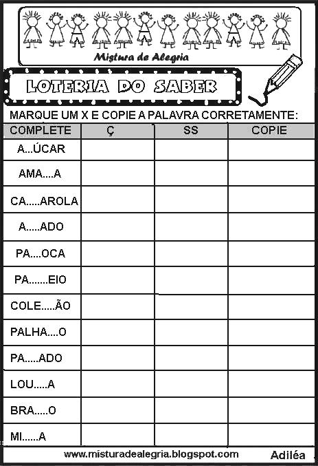 Olá amigos, vejam as atividades de alfabetização que eu acabei de criar. São atividades de ortografia, loteria do saber.