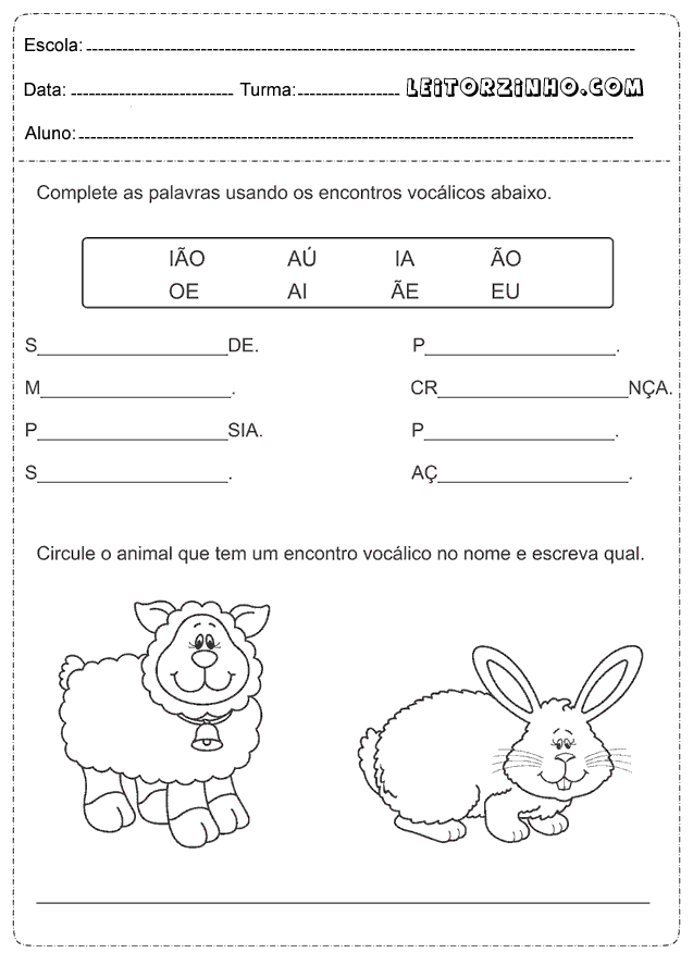 | Complete as palavras usando os encontros vocálicos |