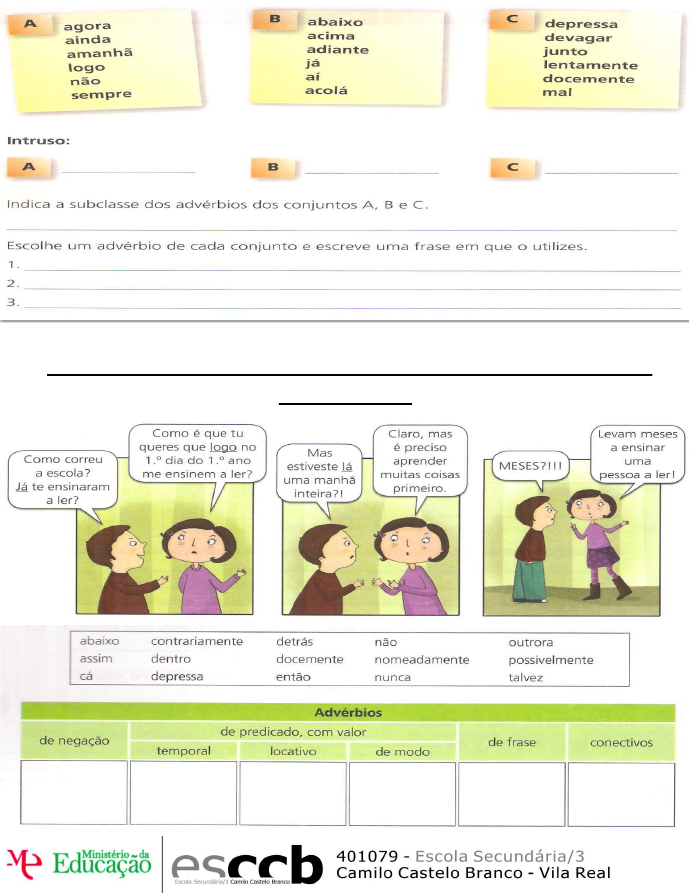 Atividades e Exercícios do 7º ano de Português – Advérbios