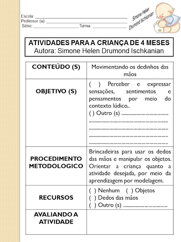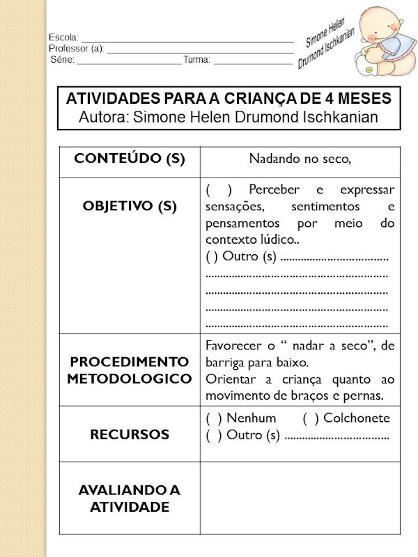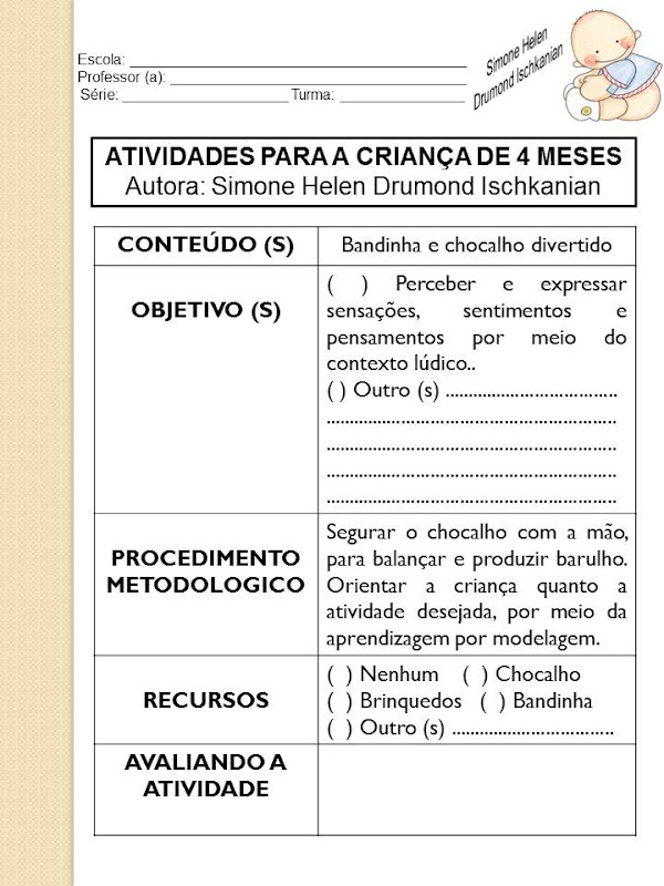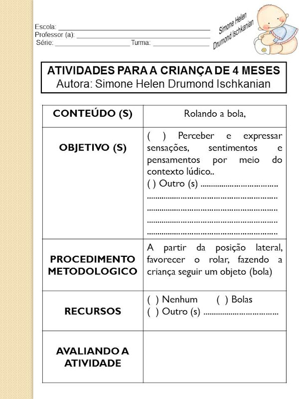 ATIVIDADES PARA A CRIANÇA DE 4 MESES