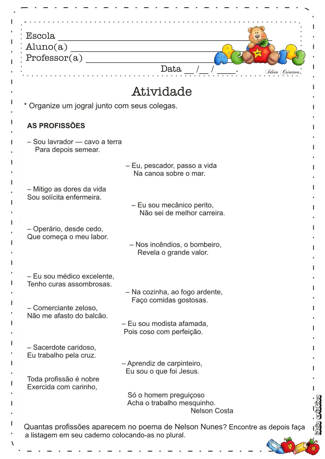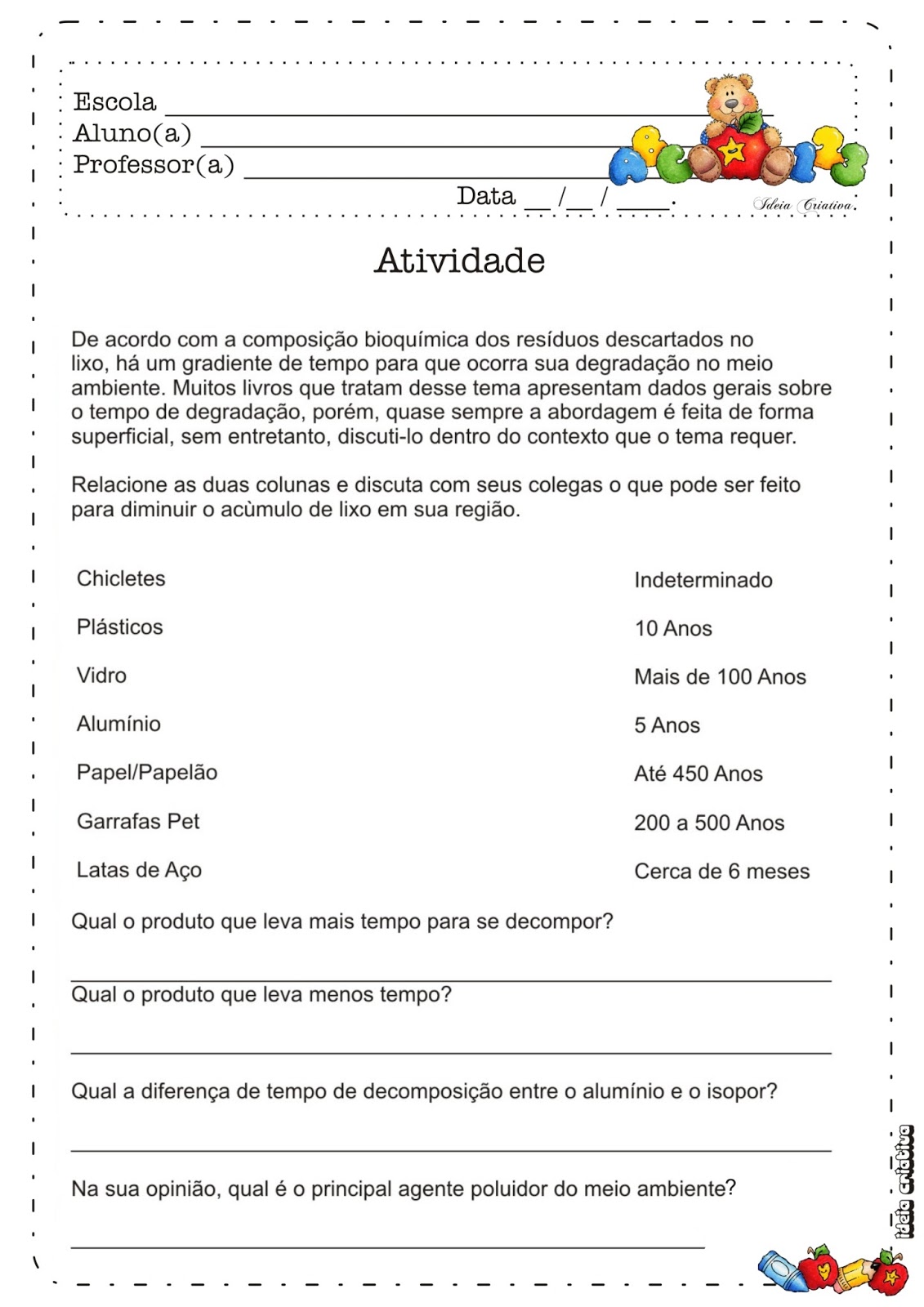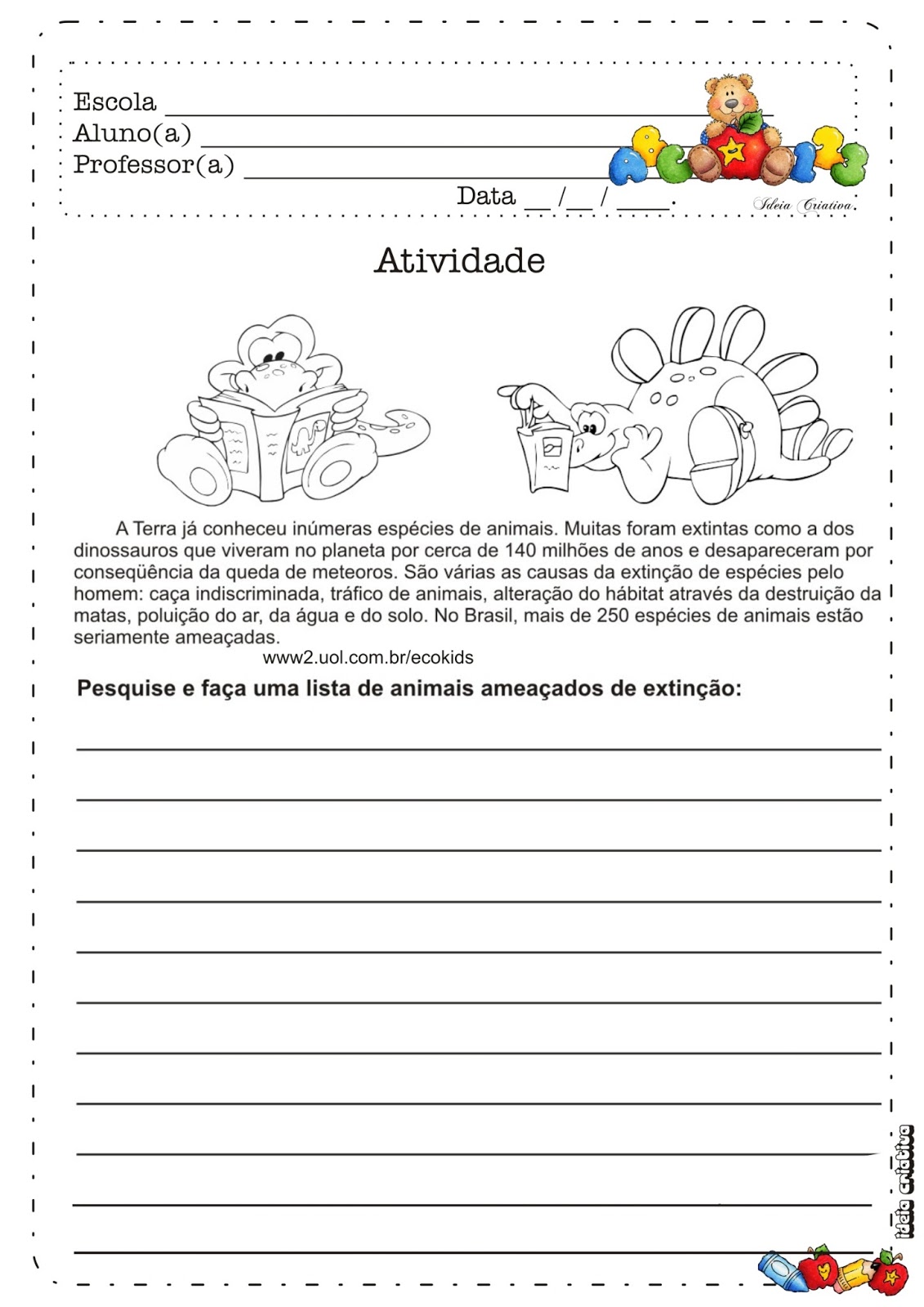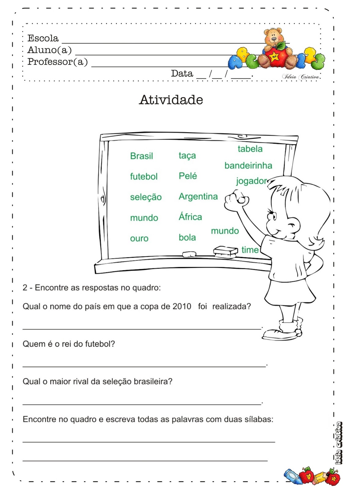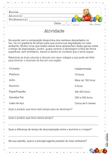 ATIVIDADES PARA O 3º ANO