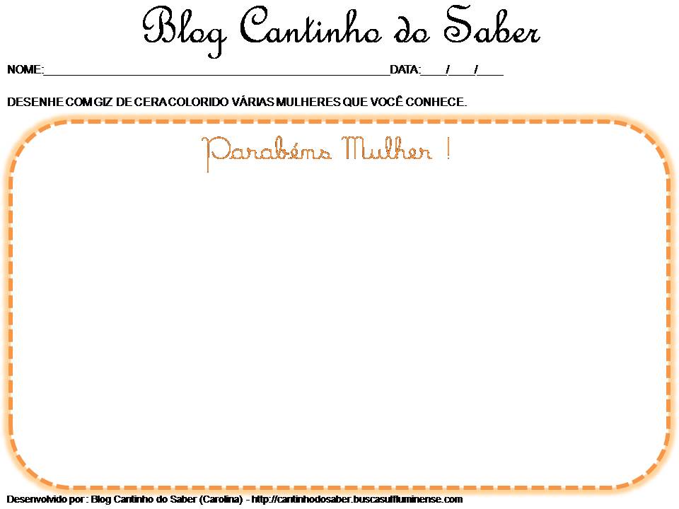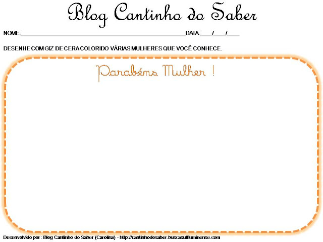 Em roda de conversa o professor motivará aos alunos dizendo que para comemorar o Dia da Mulher, irão pensar nas diferentes atividades que as mulheres fazem.