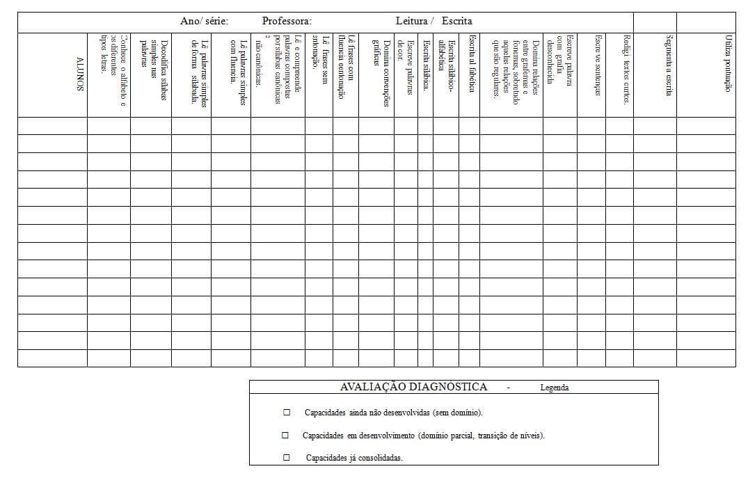 Fichas para avaliação de leitura e escrita…