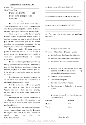 Avaliação de língua portuguesa e matemática 4º ano.