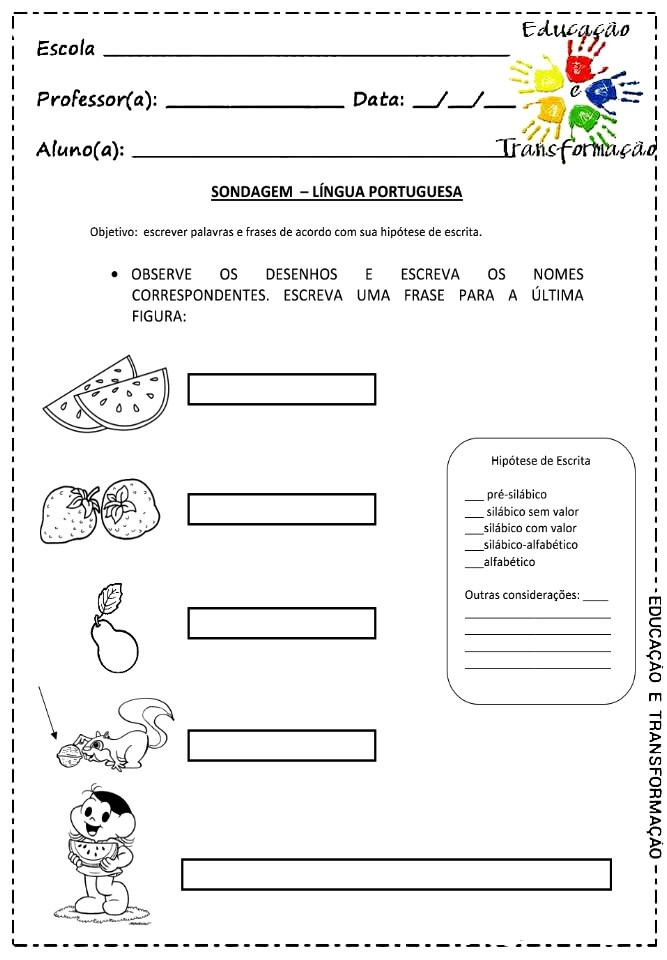 Avaliação de Língua Portuguesa Modelo de avaliação para sondagem de hipótese de escrita…