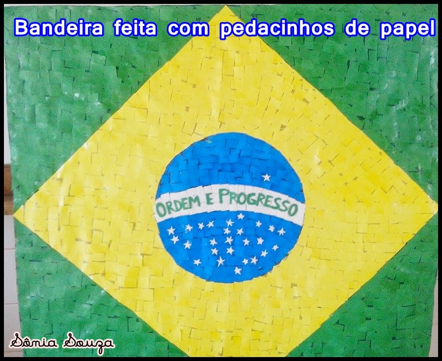 Bandeira feita com papel picado das cores da Bandeira Brasileira.