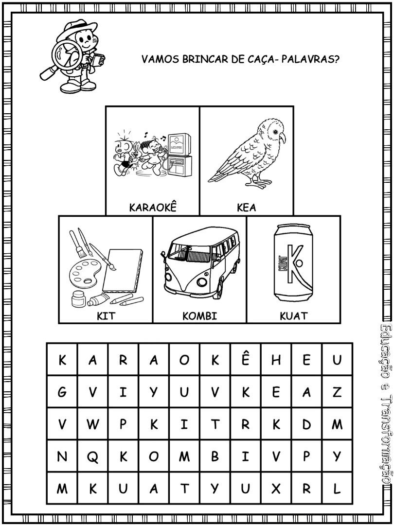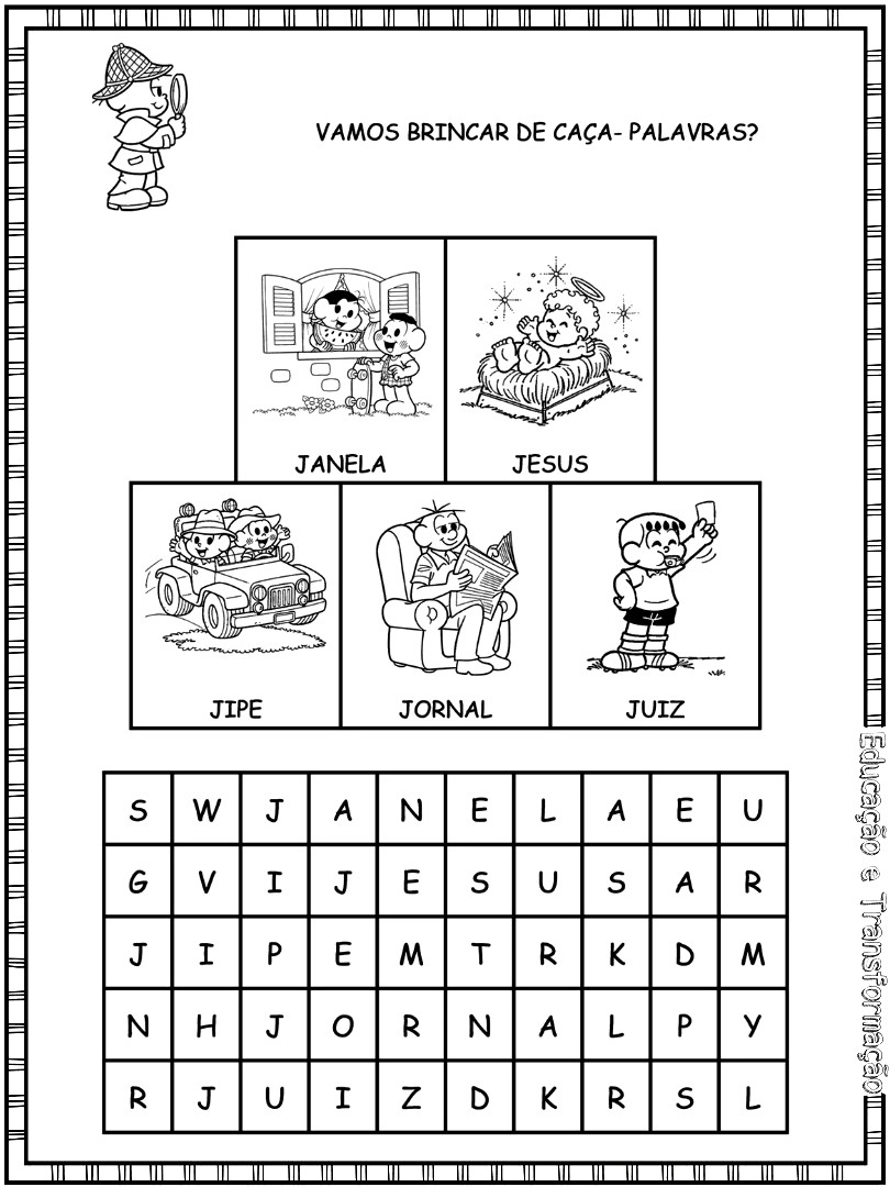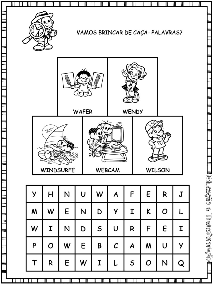 Caderno com caça-palavras para cada letra do alfabeto com a Turma da Mônica…