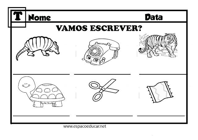Palavras: tatu, telefone, tigre, tartaruga, tesoura, tapeteVEJA O CADERNO DE ESCRITA COMPLETO AQUI