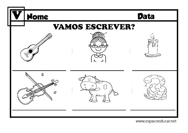 Palavras: violão, vovó, vela, violino, vaca, víbora.