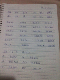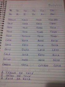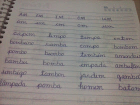 - Depois de fazer essa leitura com os alunos de preferência individualmente, acrescente nos cadernos outras famílias mais complexas, escreva outras palavras com letras minúscula e vá sempre atualizando o caderno, no ritmo de aprendizagem. Importante que seja feito com a letra do professor.
