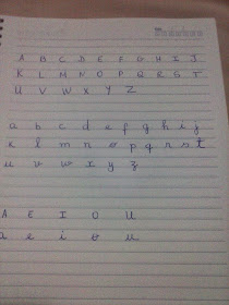 - Escreva na primeira folha o alfabeto maiúsculo, minúsculo e as vogais maiúscula e minúscula.