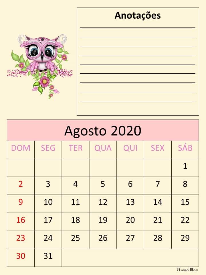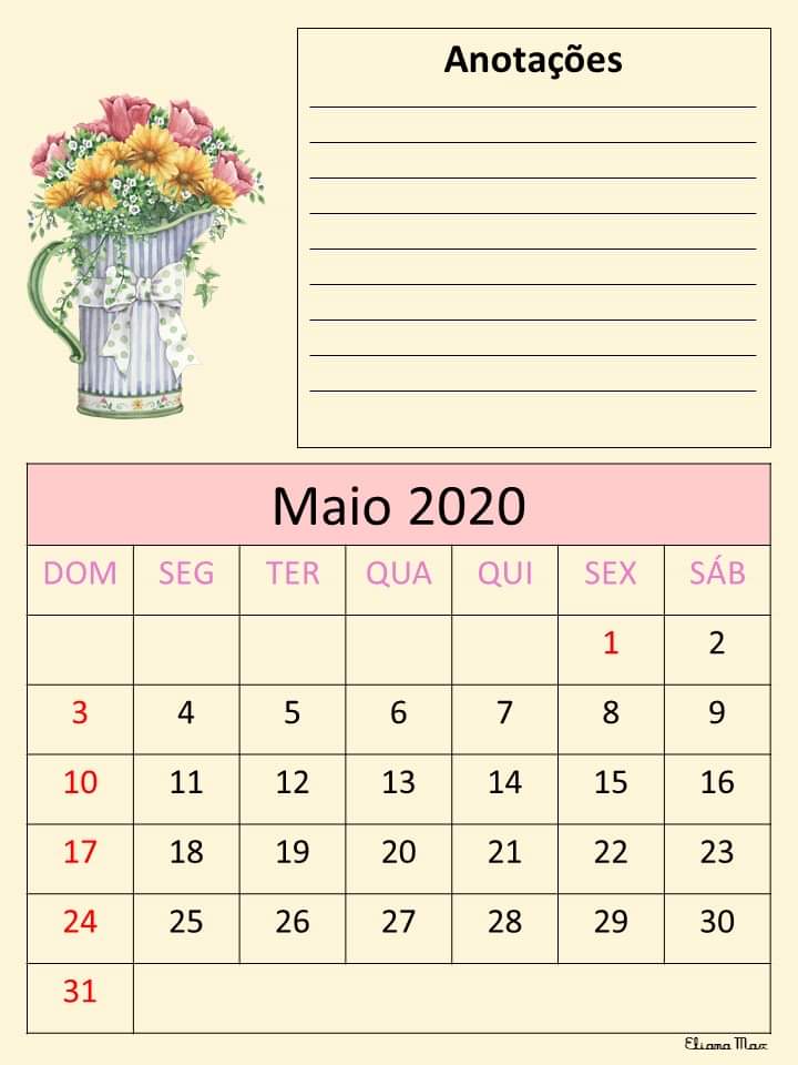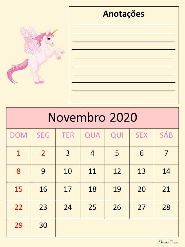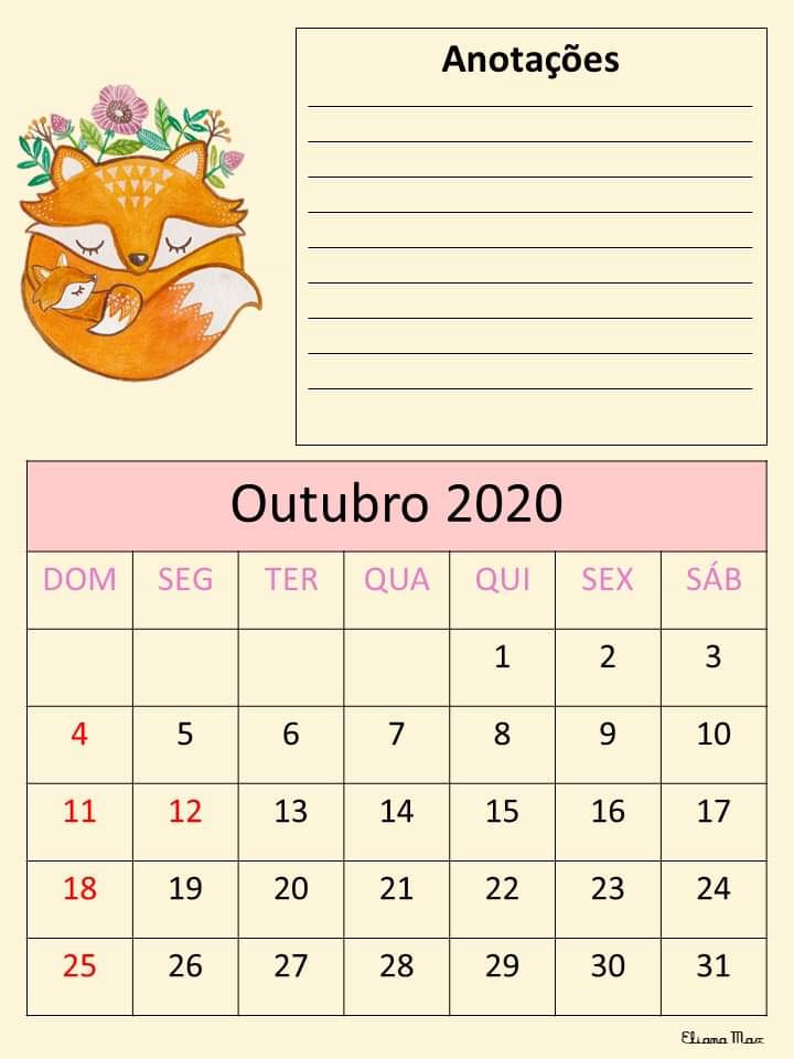 Calendário 2020 – Eliana Max Calendário 2020 elaborado pela professora Eliana Max… Lindo!
