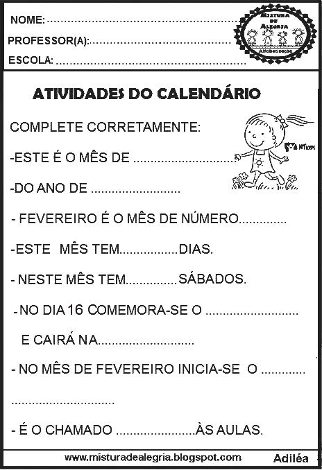 É o calendário do mês de fevereiro, para que os alunos possam colorir no dia-a-dia.