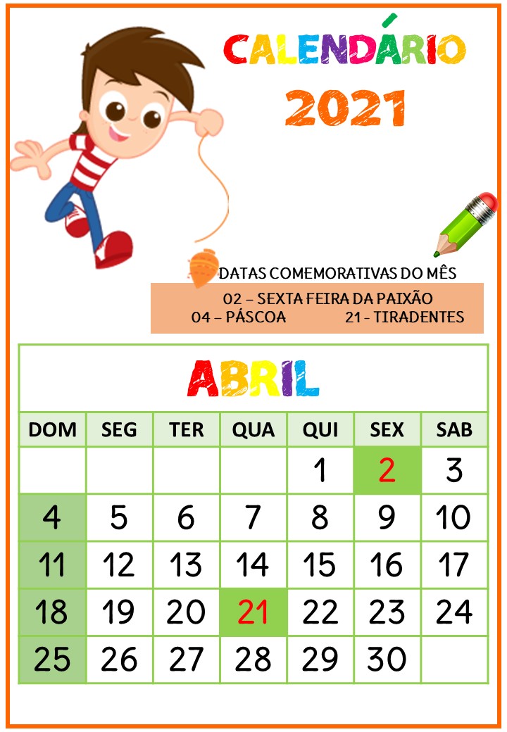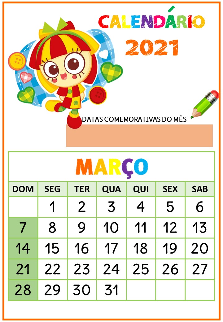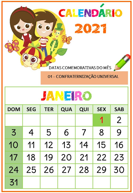 Calendário 2021 Sítio do Pica Pau Amarelo pronto para imprimir