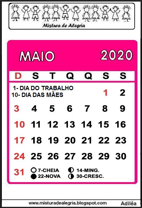 Resolvi fazer este calendário de 2020 bem grande, para ser usado na parede da sala de aula, com os meses separados, para que você possa criá-lo do seu jeito.