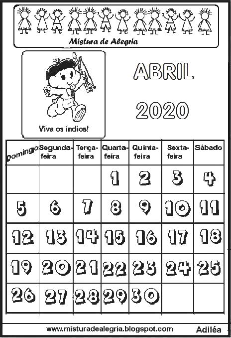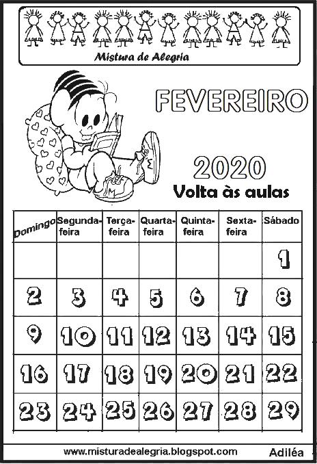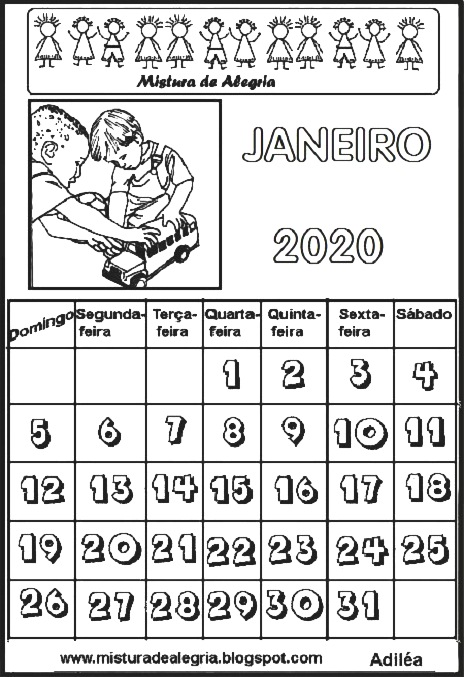CALENDÁRIO DE 2020 – PARA COLORIR