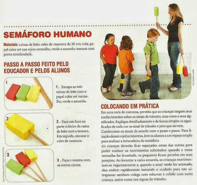 4. ATIVIDADE LÚDICA: Com brinquedos (bonecos, carrinhos, caminhões…) e materiais confeccionados com sucatas, é de extrema riqueza a realização de atividades lúdicas em que as crianças participam como pedestres e condutores, uma vez que, envolvidas na brincadeira, elas se realizam e concretizam suas ideias e imaginações, o que favorece uma rica oportunidade para a construção de conhecimentos.