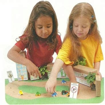 4. ATIVIDADE LÚDICA: Com brinquedos (bonecos, carrinhos, caminhões…) e materiais confeccionados com sucatas, é de extrema riqueza a realização de atividades lúdicas em que as crianças participam como pedestres e condutores, uma vez que, envolvidas na brincadeira, elas se realizam e concretizam suas ideias e imaginações, o que favorece uma rica oportunidade para a construção de conhecimentos.