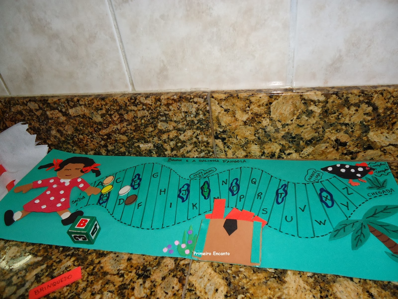 A história Bruna e a galinha D Angola serviu de inspiração para muitas atividades em sala de aula, uma delas foi a trilha com desafios . E jogar é uma maneira alegre e interessante de aprender.